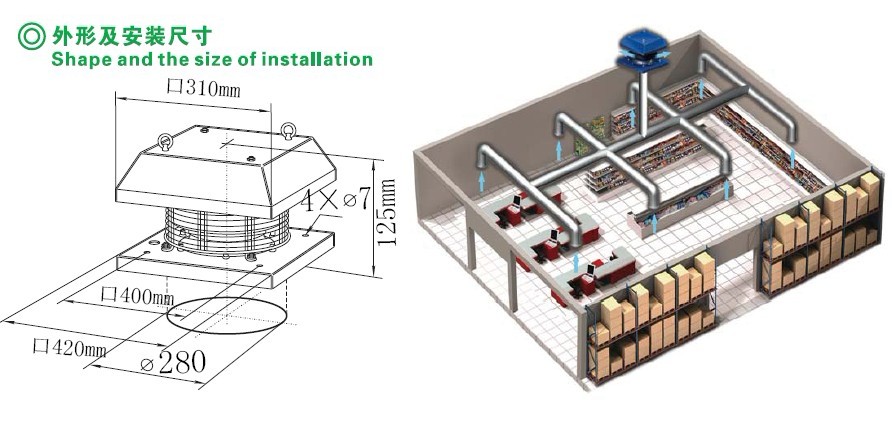 具有体积小吸力强,风量大、重量轻,效率高、等特点。主要用于厂房 屋顶抽风,大棚养殖屋顶抽风,控制柜顶,变频控制柜,电焊机,,电 信等各种领域。此电机可以订做各种电压AC110V-690V及双电压,宽电压 和单相变频50HZ,双变频50-60HZ,DC12-48V。