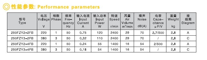 250FZY-FB: 性能参数: