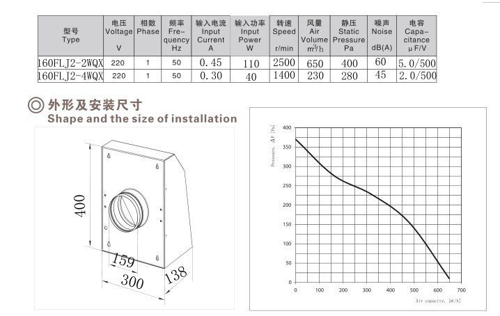 + 方形管道离心风机